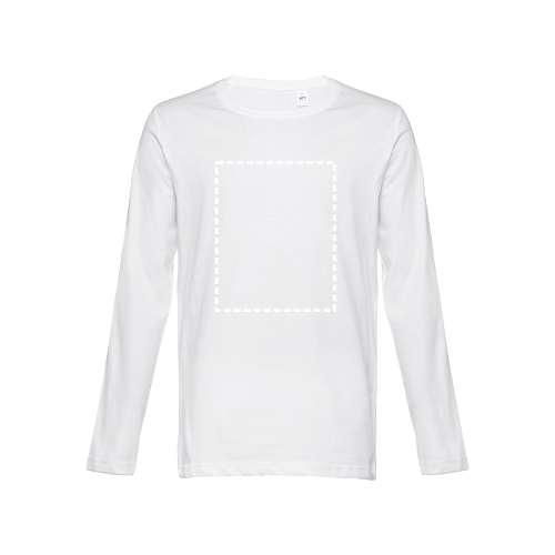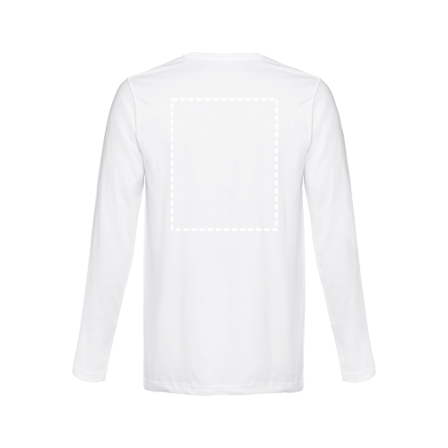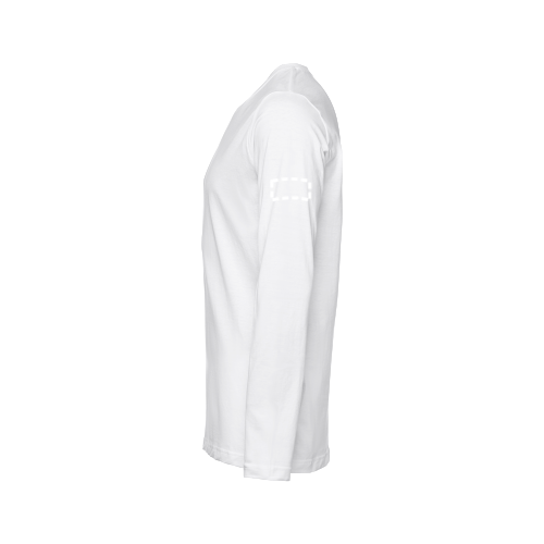 Herren Langarmshirt aus 100% Strickjersey und Baumwolle (150g/m²) mit kardiertem Baumwollfaden, in Tubular-Form mit geripptem Kragen in 1x1 Ripp, Jersey-Verstärkung und Doppelnaht an Ärmeln und Saum. Größen: S, M, L, XL, XXL