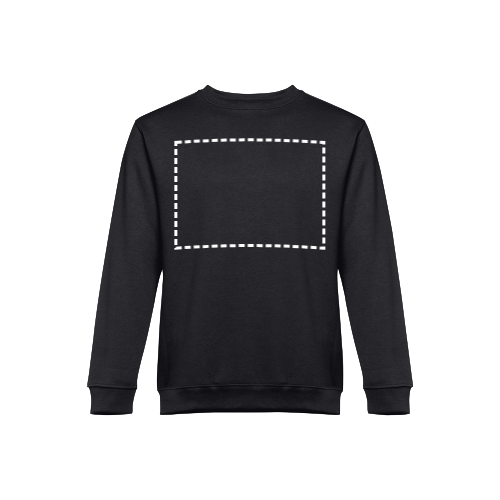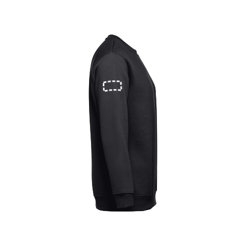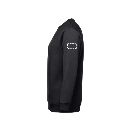 Sweatshirt aus 50% Baumwolle und 50% Polyester (300g/m²), unisex. Innen kardiert, 1x1 Ripp, Bund am Ärmel und Saum, Doppelnaht und Verstärkungsband am Kragen. Größen: S, M, L, XL, XXL
