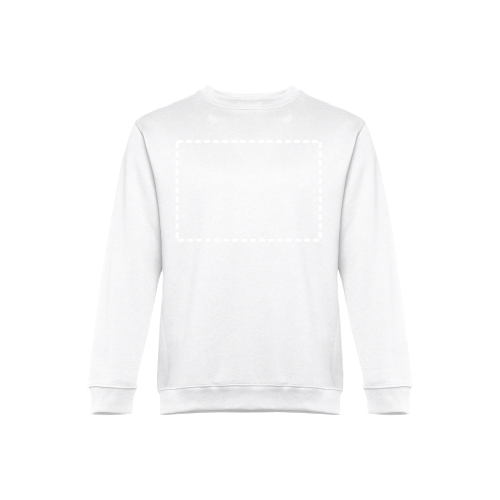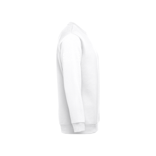 Sweatshirt aus 50% Baumwolle und 50% Polyester (300g/m²), unisex. Innen kardiert, 1x1 Ripp, Bund am Ärmel und Saum, Doppelnaht und einem Verstärkungsband am Kragen. Größen: S, M, L, XL, XXL