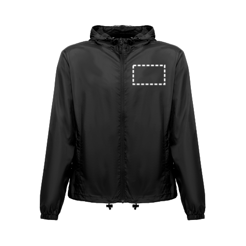Wasserdichte Windjacke (Unisex) aus 100% recyceltem Nylontaftgewebe (65 g/m²). Vordere Öffnung mit YKK®-Reißverschluss - eine Marke, die moderne Ausrüstung und hohe Qualitätskontrolle verwendet. Die Kapuze ist mit Mesh bezogen und hat Kordelzüge zum Zuziehen. Sie hat Ösen für eine gute Belüftung, einen elastischen Verschluss mit Stoppern am Saum und Seitentaschen mit Reißverschluss. Größen: XS, S, M, L, XL, XXL