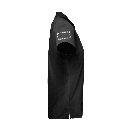 Technisches Kurzarm-Poloshirt für Damen aus 100% recyceltem Polyester-Piqué-Strick (180 g/m²). Dieses Poloshirt hat einen 1x1-Rippkragen und Doppelnähte an den Ärmeln und am Saum. Verstärkte Knopfleiste mit 3 farbigen Knöpfen in Weiß (mit Ausnahme der Farbe 106, die mit Schwarz abgesetzt ist). Mit kleinen seitlichen Öffnungen an der Unterseite des Poloshirts in Weiß (mit Ausnahme der Farbe 106, die mit Schwarz abgesetzt ist). Größen: XS, S, M, L, XL, XXL