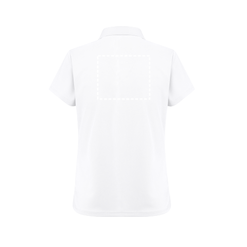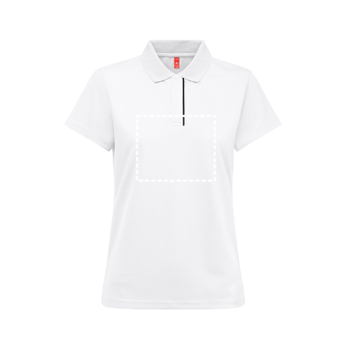 Technisches Kurzarm-Poloshirt für Damen aus 100% recyceltem Polyester-Piqué-Strick (180 g/m²). Dieses Poloshirt hat einen 1x1-Rippkragen und Doppelnähte an den Ärmeln und am Saum. Verstärkte Knopfleiste mit 3 farbigen Knöpfen in schwarzer Ausführung. Mit kleinen seitlichen Öffnungen an der Unterseite des Polos und in Schwarz ausgeführt. Größen: XS, S, M, L, XL, XXL