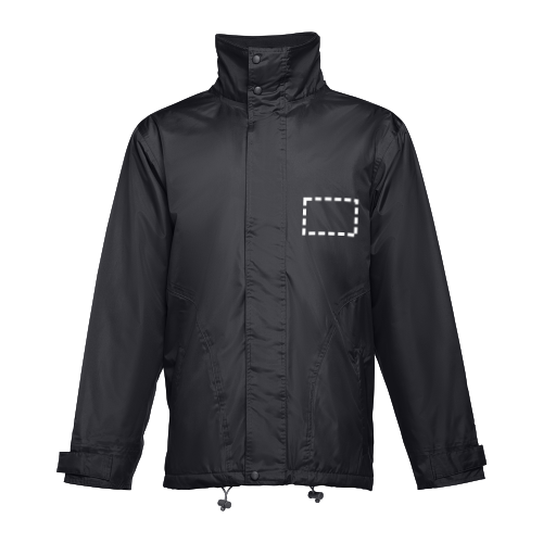 Parka aus 100% Polyester, gepolstert - Aussenseite (240g/m²) aus 100% Polyester-Pongee 240 und wasserdichter PVC-Beschichtung, Innenseite (65g/m²) aus 100% Polyester-Taft, Füllung aus 100% Polyester (80g/m²). Der Parka hat einen mit schwarz ausgekleideten Polarkragen, der mit einem Klettverschluss schliessbar ist. Die Kapuze ist faltbar und somit leicht im Kragen zu verstauen. Die Schnurbänder mit schwarzem Stopper am Kragen und an der Jackenunterseite ermöglichen eine korrekte Anpassung. Der Reissverschluss hat eine Klettverschlussabdeckung, die zusätzlich mittels Druckknöpfen geschlossen werden kann. 2 Außentaschen mit Abdeckung und 2 Innentaschen mit Klettverschluss. Mit geripptem Innenbund in 2x2, verstellbarem Ärmelbund ebenfalls mit Klettverschluss. Der Reißverschlusszugang auf der Rückseite vereinfacht die Veredelung. Größen: XS, S, M, L, XL, XXL