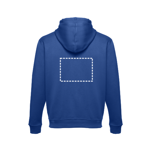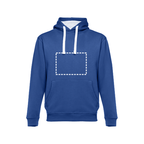 Sweatshirt aus 50% Baumwolle und 50% Polyester (320g/m²), unisex. Von innen kardiert mit einer Kängurutasche und Ripp 1x1 an Ärmelbündchen und Bund. Kapuze mit farblichem Kordelzug. Größen: S, M, L, XL, XXL