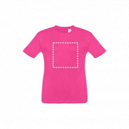 Kinder T-Shirt aus 100% Strickjersey und Baumwolle (150g/m²), unisex mit geripptem Kragen in 1x1 Ripp, Jersey-Verstärkung und Doppelnaht an den Ärmeln und Saum. Größen: 2, 4, 6, 8, 10, 12