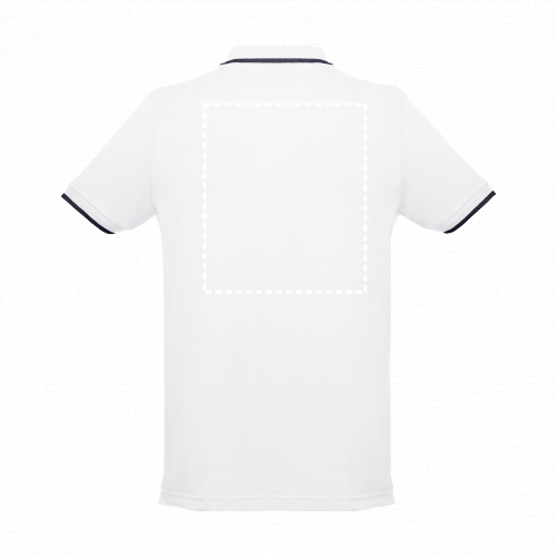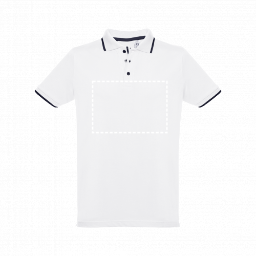 Herren Poloshirt aus Piqué Stoff 100% kardierter Baumwolle (210g/m²)," Slim Fit" mit geripptem Kragen und Ärmel. Der Kragen, die Knopfleiste und die Ärmel haben einen zweifarbigen Kontrast. Mit verstärkter Knopfleiste und 3 farblich abgestimmten Knöpfen, einem Ersatzknopf an der Innennaht und seitlichen Öffnungen. Größen: S, M, L, XL, XXL