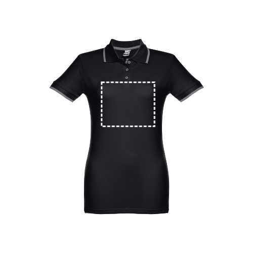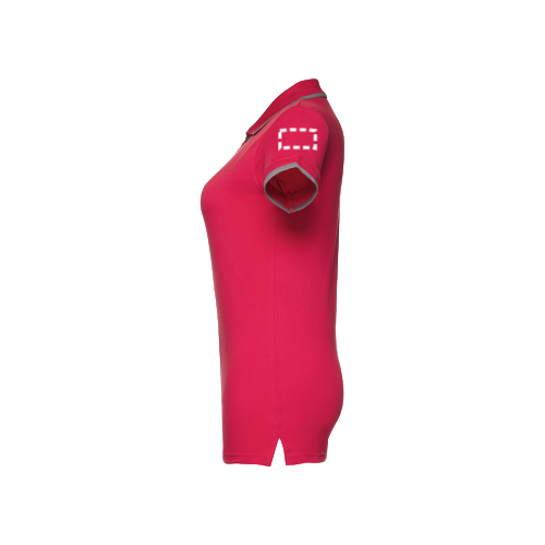 Damen Poloshirt aus Piqué Stoff 100% kardierter Baumwolle (210g/m²), tailliert mit geripptem Kragen und Ärmel. Der Kragen, die Knopfleiste und die Ärmel haben einen zweifarbigen Kontrast. Mit verstärkter Knopfleiste und 3 farblich abgestimmten Knöpfen, einem Ersatzknopf an der Innennaht und seitlichen Öffnungen. Bei der Farbe 183 bestehend aus 85% Baumwolle und 15% Viskose. Größen: S, M, L, XL, XXL