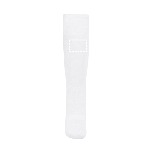 Wadenhohe Sportsocken für Kinder aus 95% Polyester und 5% Spandex (100g/m²). Verstärktes Netzgewebe im Sohlen- und Knöchelbereich des Fußes, für mehr Komfort beim Sport. Enthält Belüftungsnetz und elastische Band am Bund Größen:30-35