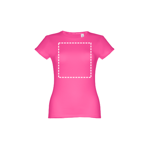 Damen T-shirt aus Strickjersey und 100% Baumwolle (150 g/m²), kurzarm mit kardiertem Baumwollfaden. Bei der Farbe 183 bestehend aus 90% Baumwolle und 10% Viskose. Schmaler Jersey-Kragen mit Satin-Verstärkungsband. Doppelnaht an Ärmeln und Saum. Tailliert. Größe: 3XL
