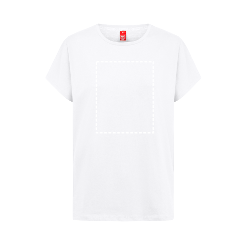 Regulär geschnittenes T-Shirt für Frauen (150 g/m²) mit enzymatischer Behandlung aus Jersey-Stoff (100% Baumwolle aus nachhaltigem Anbau). Es hat einen dünnen doppelten Kragen aus Jersey mit einem Verstärkungsband aus Satin. Geschnitten und genäht mit Doppelnähten an den Ärmeln und an der Unterseite. Größen: XS, S, M, L, XL, XXL