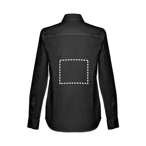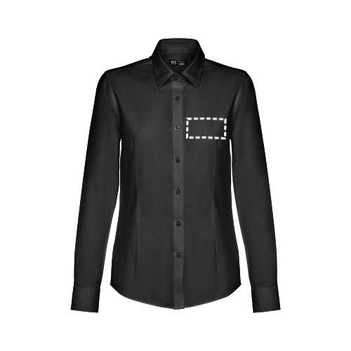 Damen langarm Oxford Bluse aus 70% Baumwolle und 30% Polyester (130g/m²), tailliert mit verstellbaren Manschetten mit 2 Knöpfen, einer Knopfleiste mit 7 farbigen Knöpfen und 2 Vorder- und 2 Rückennähte. Größen: S, M, L, XL, XXL