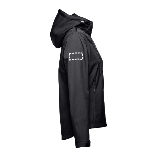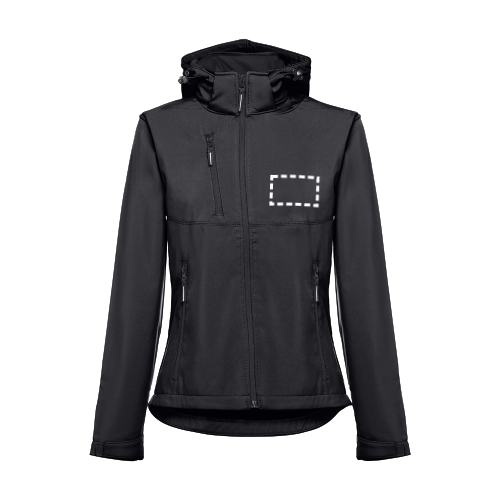 Damen Softshell Jacke aus 96% Polyester und 4% Elasthan (280g/m²) mit abnehmbarer, wasserabweisender und zweischichtiger Kapuze. Diese Jacke ist mit Fleecefutter ausgestattet, hat 2 Vordertaschen mit Reißverschluss und eine diagonale Brusttasche. Auch hat diese verstellbare Ärmelbündchen mit Klettverschluss, eine abnehmbare Kapuze mit Kordelzug, einen verstellbaren Stopper und Klettverschluss. Abgerundete Rückenseite. Größen: S, M, L, XL, XXL