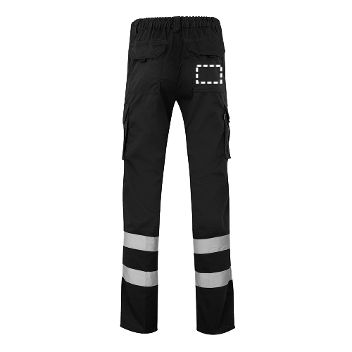 Multi-Pocket-Stretchhose (240 g/m²) aus Baumwolle (46%), EME (38%) und Polyester (16%). Elastischer Bund, reflektierende Streifen an der Hosenunterseite und sechs Taschen (2 französische Taschen, 2 seitliche Blasebalgtaschen und 2 hintere Blasebalgtaschen). Produkt gemäß EU-Verordnung 2016/425, zertifiziert nach EN17353 und Klasse Nº B2. Größe: 34, 36, 38, 40, 42, 44, 46, 48, 50, 52, 54, 56, 58, 60