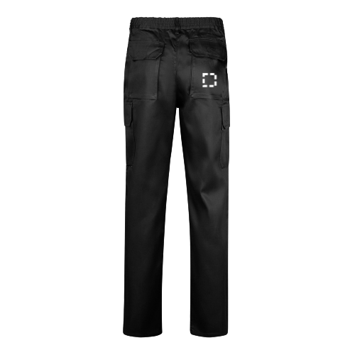 Hose mit mehreren Taschen aus Twill (200 g/m²), aus Baumwolle (35%) und Polyester (65%). Mit elastischem Bund und sechs Taschen (2 französische Taschen, 2 seitliche Zwickeltaschen und 2 Gesäßzwickeltaschen). Größe: 34, 36, 38, 40, 42, 44, 46, 48, 50, 52, 54, 56, 58, 60, 62, 64