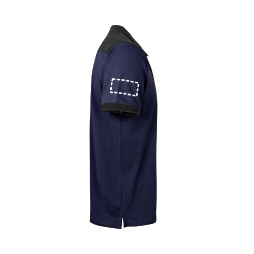 Zweifarbiges Stretch-Piqué-Poloshirt (200 g/m²) mit kurzen Ärmeln, aus Polyester (96%) und Elastan (4%). Mit Knopfverschluss-System. Farblich abgesetzte Knöpfe, gerippter Kragen, Knopfleiste und gerippte Abschlüsse an den Ärmeln. Größe: XS, S, M, L, XL, 2XL, 3XL