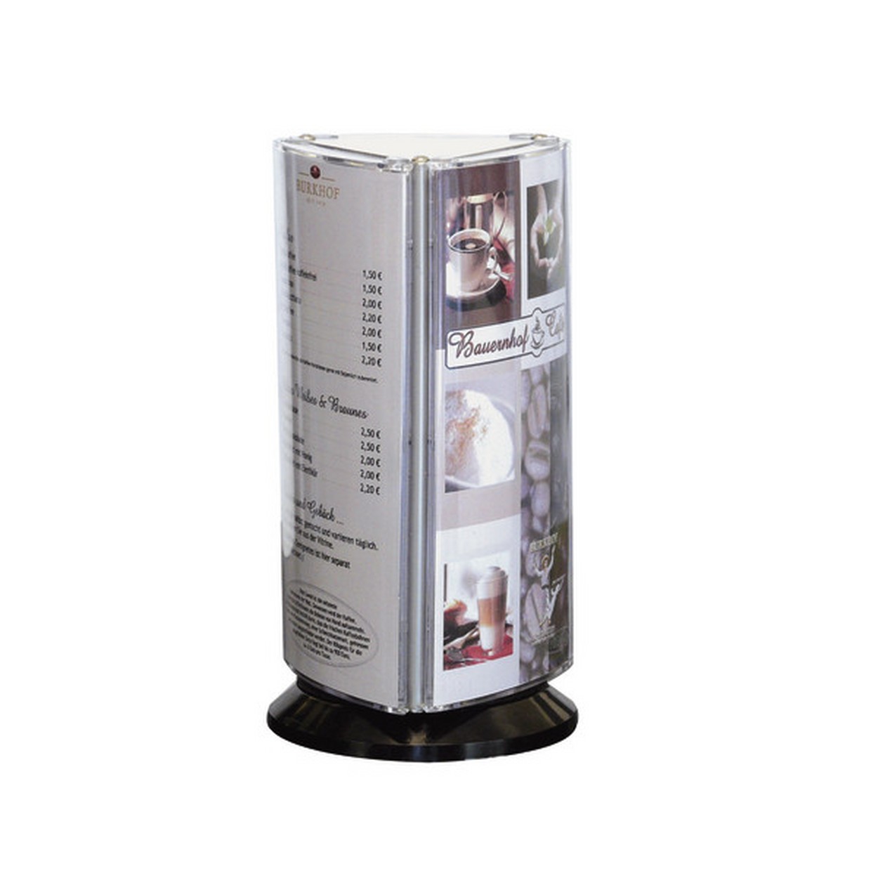 Der Pixquick Pirouette ist ein frei drehbares, dreiseitiges Thekendisplay mit drei Postertaschen im Format DIN A4, A5 oder A6. Perfekt geeignet für Einzelblattinformation für z.B. Tisch, Theke oder Empfangsbereich.