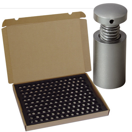 elegantes schraubsystem aus alu. manipulationsgeschützt durch entgegengesetztes gewinde. halter wandmontieren, kopf durch das paneel in den halter schrauben. seitliche lochbohrung für verschrauben des kopfes. fingerabdruck-resistent. befestigung: schraubsystem, frontale montage. material: matt eloxiertes aluminium. wandabstand: 13mm oder 20mm, Ø13mm