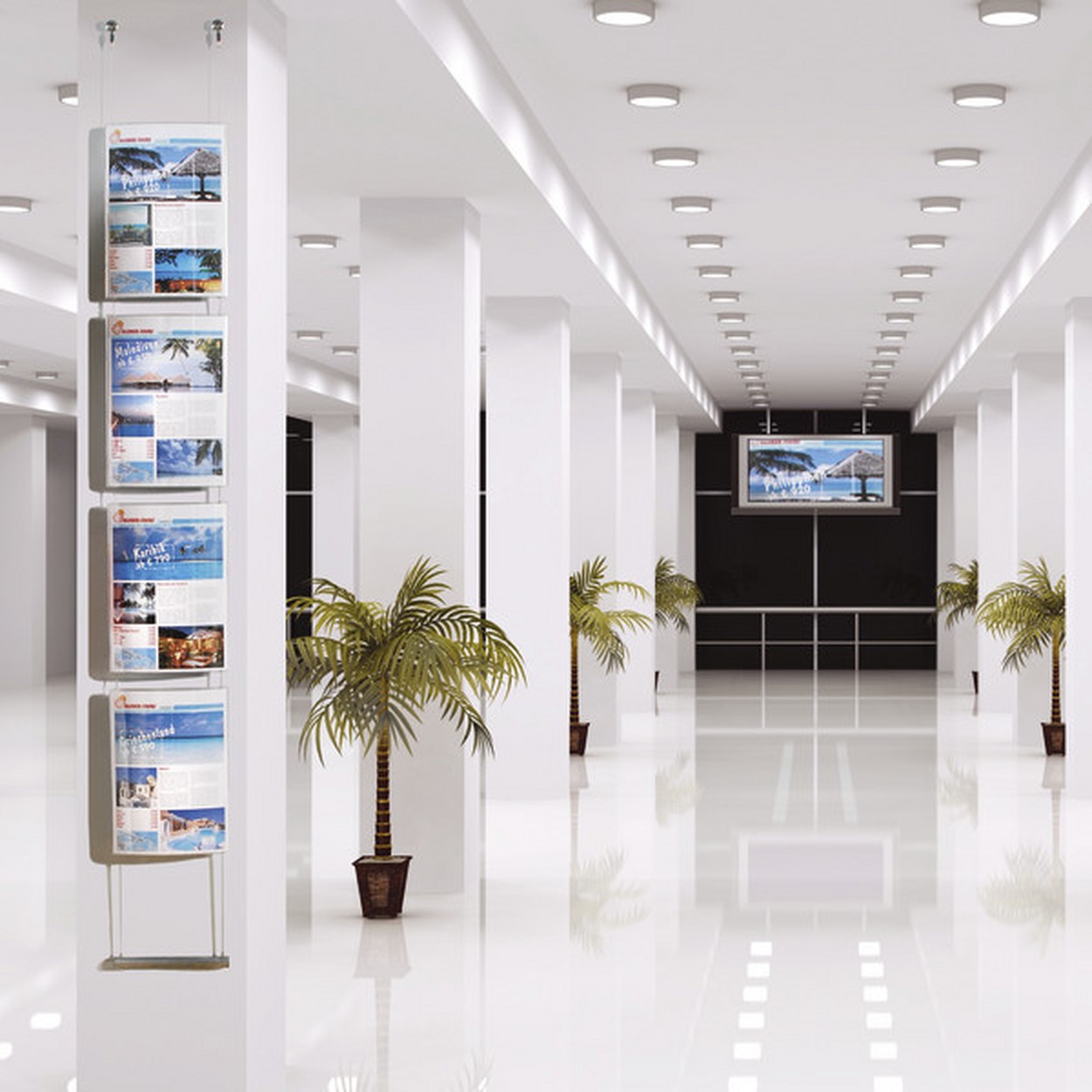 Mit dem abgehängten Modulsystem für die Wand Kite präsentieren Sie Pixquick A4 wandmontiert am Seil. Das Komplettset enthält 4 transparente Pixquick für DIN A4 sowie Messingbefestigungen, passendes Stahlseil und Montagematerial. Staubgeschützt und rahmenlos, schnellster Infowechsel: das zeichnet unsere Poster- und Infotaschen Pixquick aus.