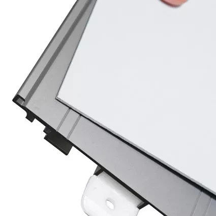 Das Türschild signcode verfügt über ein weißbeschichtetes Aluminiumpaneel, das entweder direkt beschriftet oder aufkaschiert werden kann.