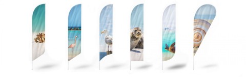 Fahnen/Flags stehen grundsätzlich in zwei Formen zur Verfügung: als Tropfenform und als auswehende Form mit unterschiedlichen Unterkanten. Die Wahl, welche Form die passende ist, hängt sicherlich vom Motiv ab. Fahnen gibt es in vielen Größen. Wählen Sie zwischen der XXS-Variante (1,10 m/1,25 m) und den Fahnengiganten in XL (4,30/5,20 m).