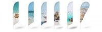 Fahnen sind im Outdoor-Bereich seit langem ein beliebtes Präsentationsmittel. Aber auch im Indoorbereich werden Fahnen bzw. Flags als Werbemittel immer beliebter. Mit ihren gewaltigen Ausmaßen sind sie unübersehbar. Dabei glänzen sie durch ihr geringes Gewicht und durch ihren einfachen Auf- und Abbau. „Groß geworden“ sind Fahnen ohne Frage bei sportlichen Events. Mittlerweile flattern sie als Eyecatcher bei jeder Art von Promotion und vor den Geschäften sehr werbewirksam im Wind. In den kleineren Varianten sorgen sie im Indoor-Bereich für frischen Werbewind. Fahnen/Flags stehen grundsätzlich in zwei Formen zur Verfügung: als Tropfenform und als auswehende Form mit unterschiedlichen Unterkanten. Die Wahl, welche Form die passende ist, hängt sicherlich vom Motiv ab. Fahnen gibt es in vielen Größen. Wählen Sie zwischen der XXS-Variante (1,10 m/1,25 m) und den Fahnengiganten in XL (4,30/5,20 m).