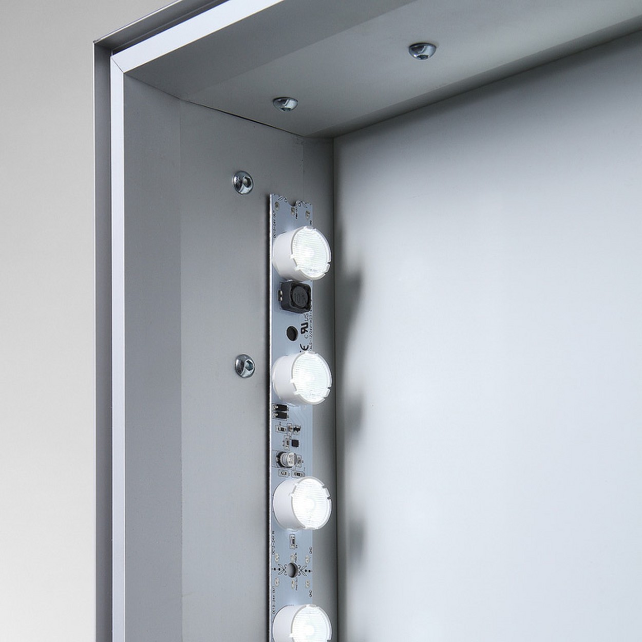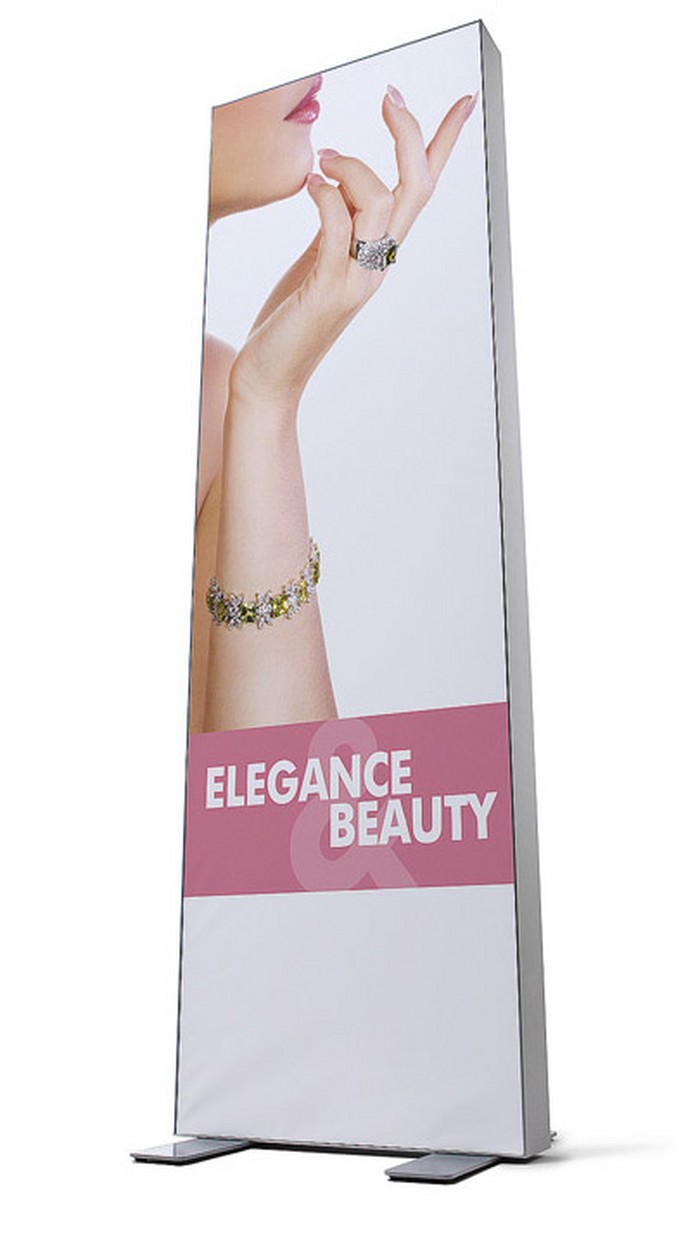 Die LED-Leuchtsäule kombiniert moderne LED-Technik mit bewährtem Textildruck und eröffnet so neue leuchtende Möglichkeiten. Das 27 mm breite Aluminiumprofil ist in elegantem Silber. Der Textildruck wird mittels Kederkante in das Profil hineingesteckt. Zwei Füße aus Stahl sorgen für die notwendige Standsicherheit.