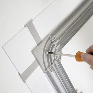 Backframe sorgt als eine Befestigung v.a. für flexible, dünne Paneele z. B. aus Hartschaum, Forex oder Aluminium für die nötige Versteifung. Zugleich befestigt der Backframe Ihr Paneel sicher und einfach. Besonders praktisch dabei ist die Nivellierung fürs aufgehängte Paneel, die vertikal bis zu 10 mm Unterschied reguliert, sodass Ihr Paneel immer gerade hängt ohne, dass neu gebohrt werden muss. Wir bieten Ihnen Backframe als komplettes Set für gängige Formate an. Außerdem erhalten Sie auch alle Seitenlängen extra für weitere Formate.