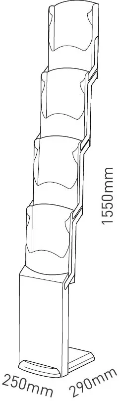 Prospekthalter: 4 x DIN A4 Prospekttaschen, Fülltiefe: 35 mm