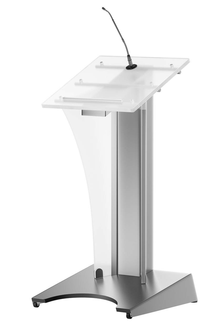 Rednerpult aus gebürstetem Edelstahl, Platten Acryl matt