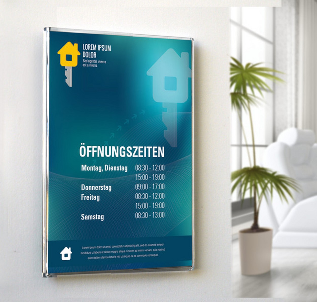 Klein, praktisch und schnell montiert: Unser Smartquick aus schlagfestem Polycarbonat lässt sich einfach und schnell an der Wand montieren. Egal ob mit Schraube und Dübel oder mit Kleber auf glatten Oberflächen: Der Smartquick ist überall dort im Einsatz, wo Sie Informationen rahmenlos und staubgeschützt präsentieren möchten. Zum Austausch lässt sich das transparente Cover nach links oder rechts öffnen.