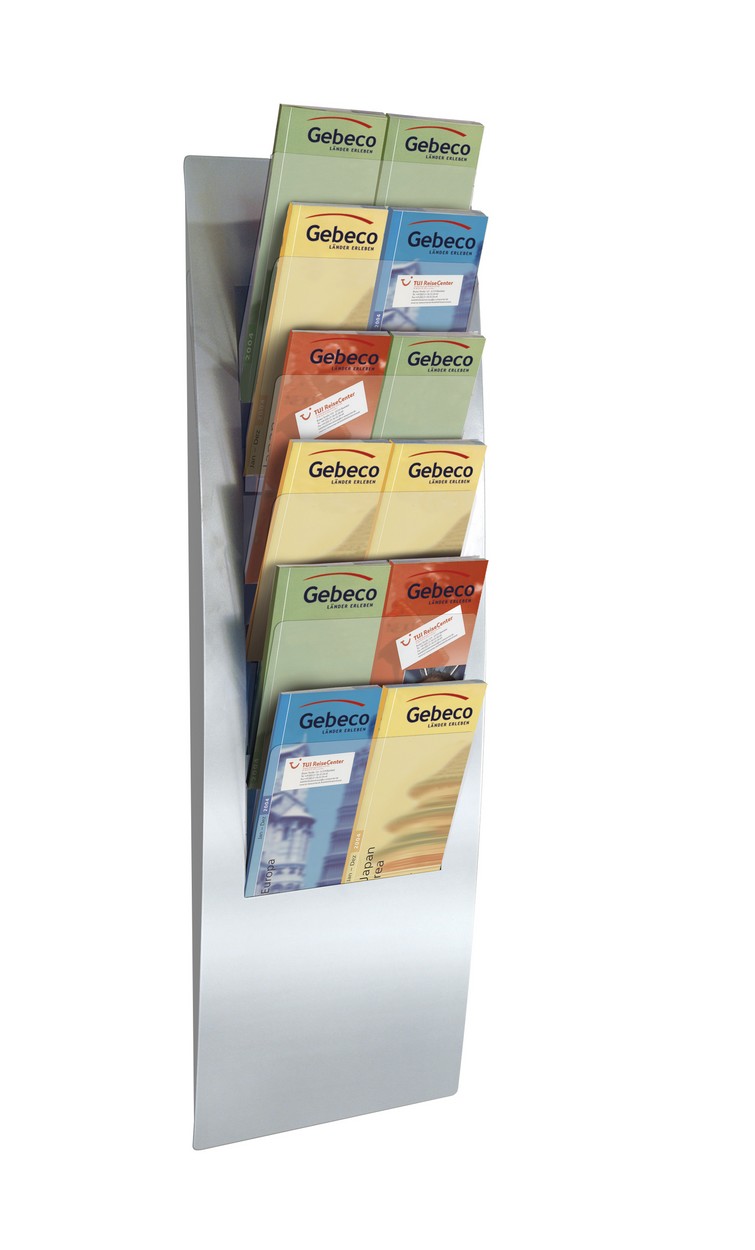 Prospekthalter: 6 Prospekt-Etagen für DIN A4, DIN A5, DIN lang;