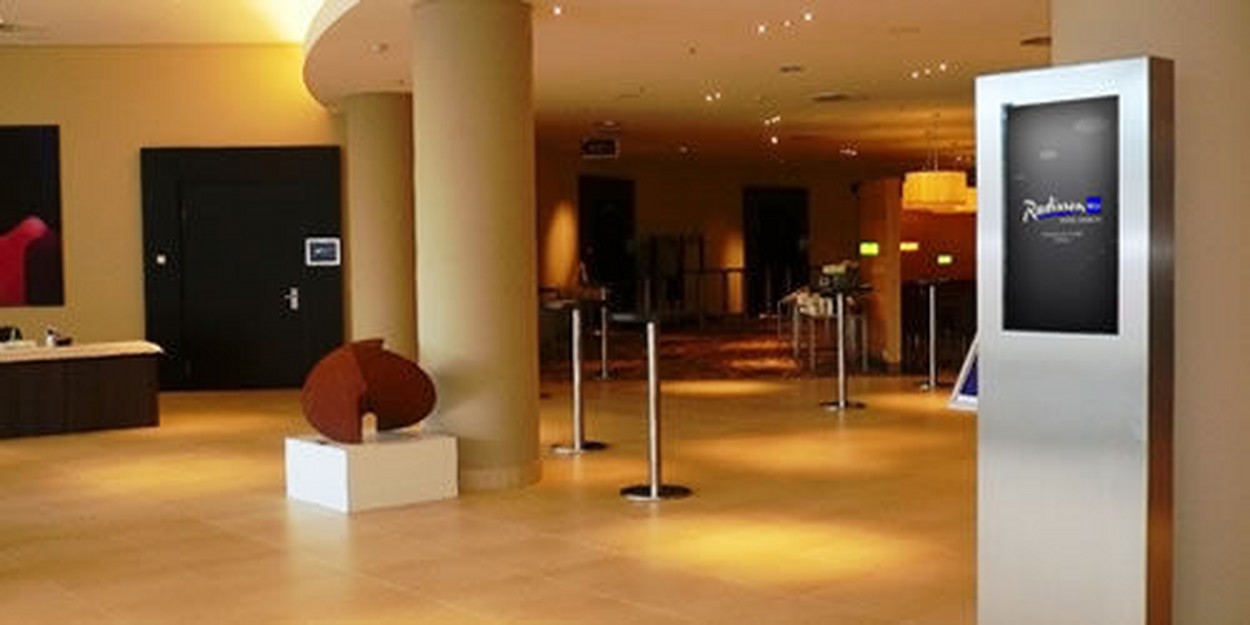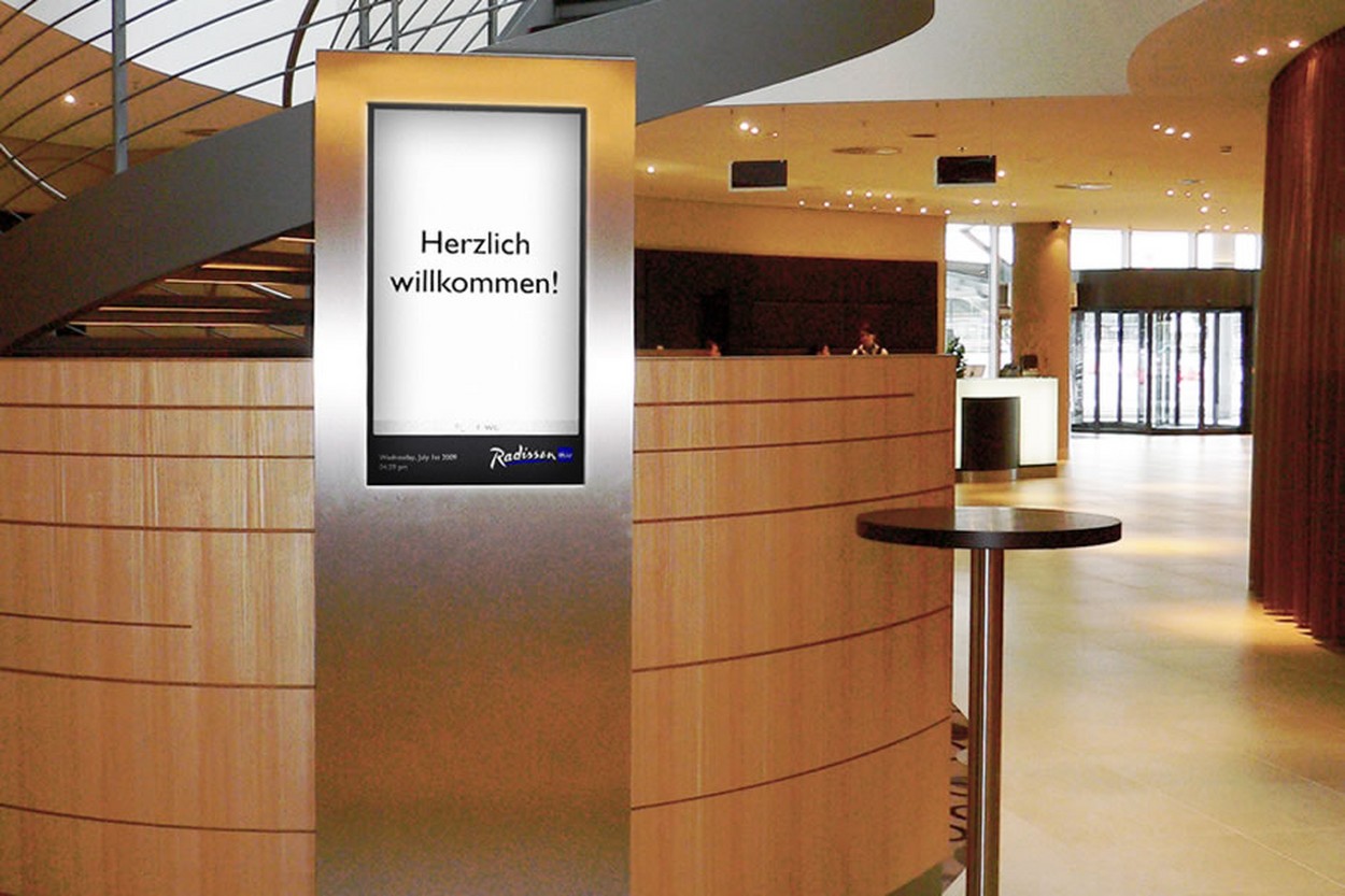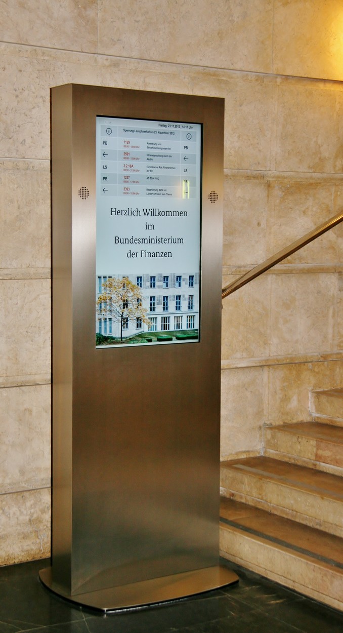 Wir bauen die Edelstahl-Stele mit Monitorgrößen von 22'' - 75''